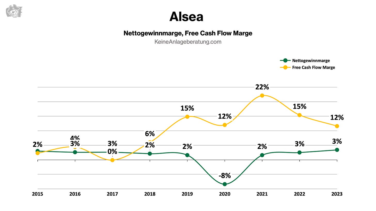 Das Margenprofil von Alsea zeigt, dass das Unternehmen auf einem positiven Kurs ist. Die Nettogewinnmarge liegt wieder über 3% und hat Potenzial weiter zu steigen.