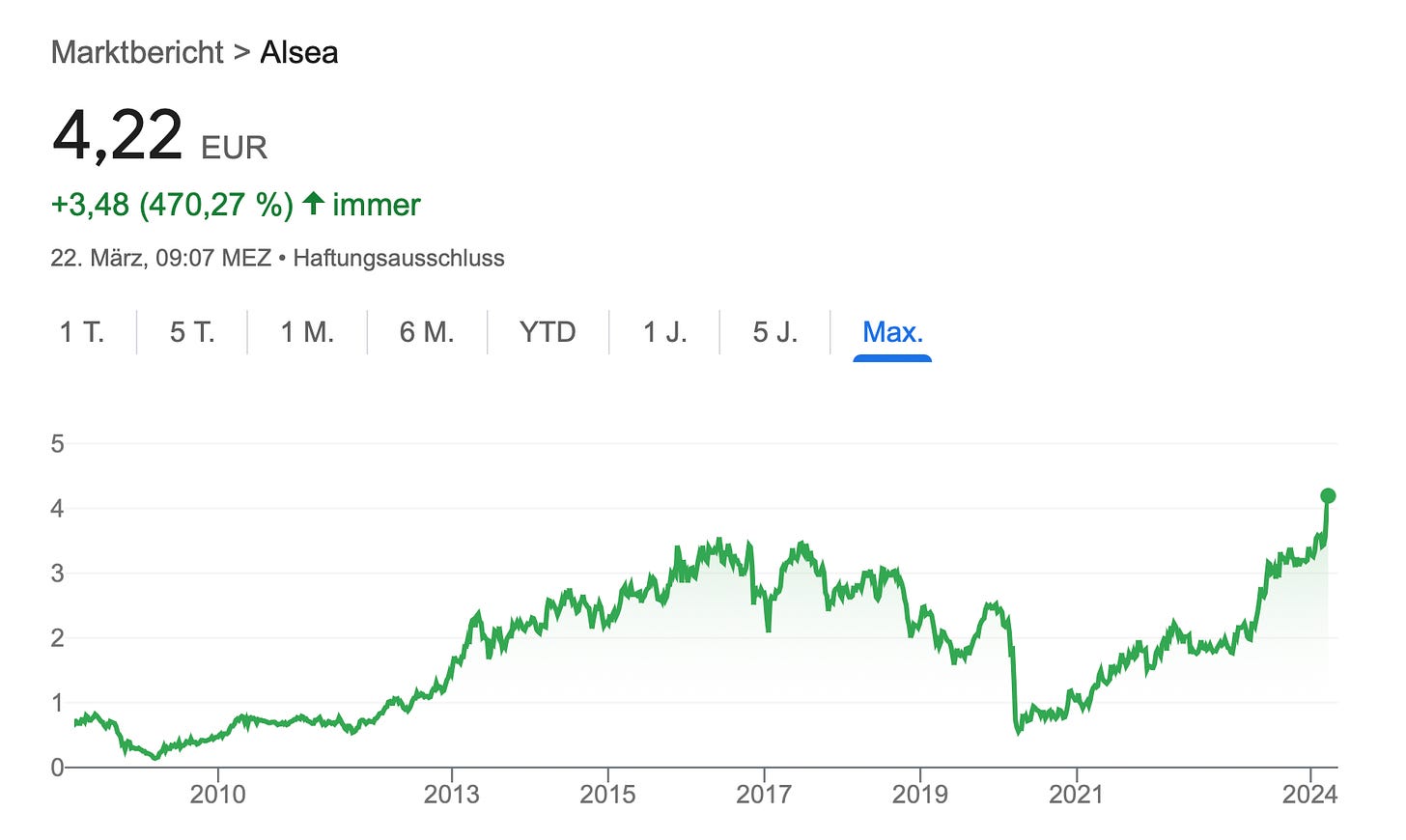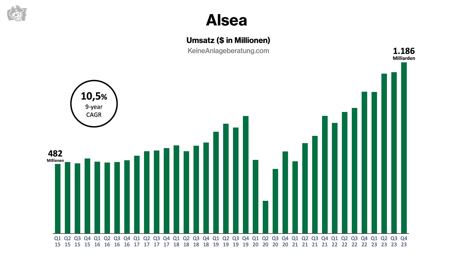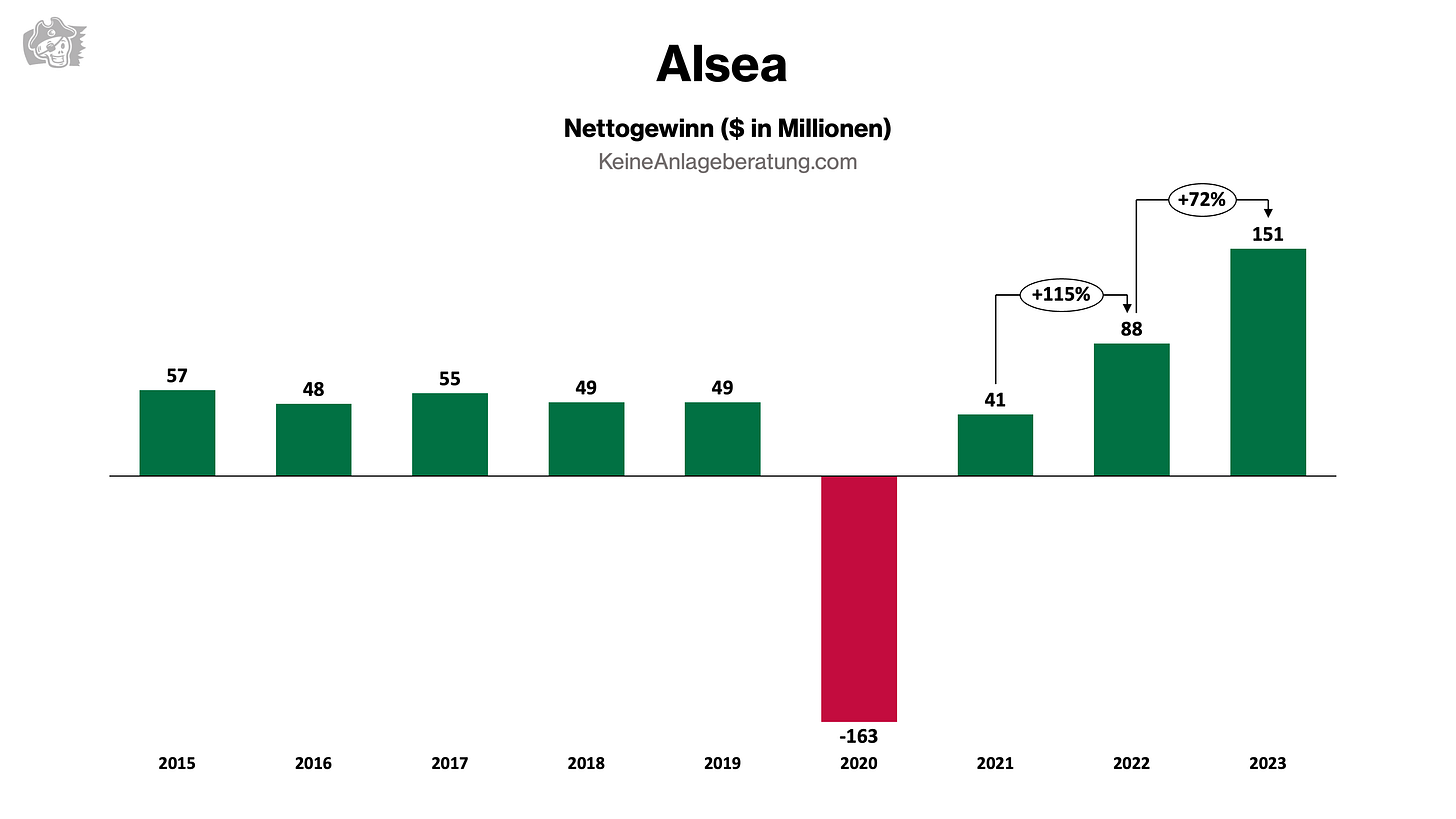 Das bisher Gesagte spiegelt sich auch deutlich in den Zahlen von Alsea wider.