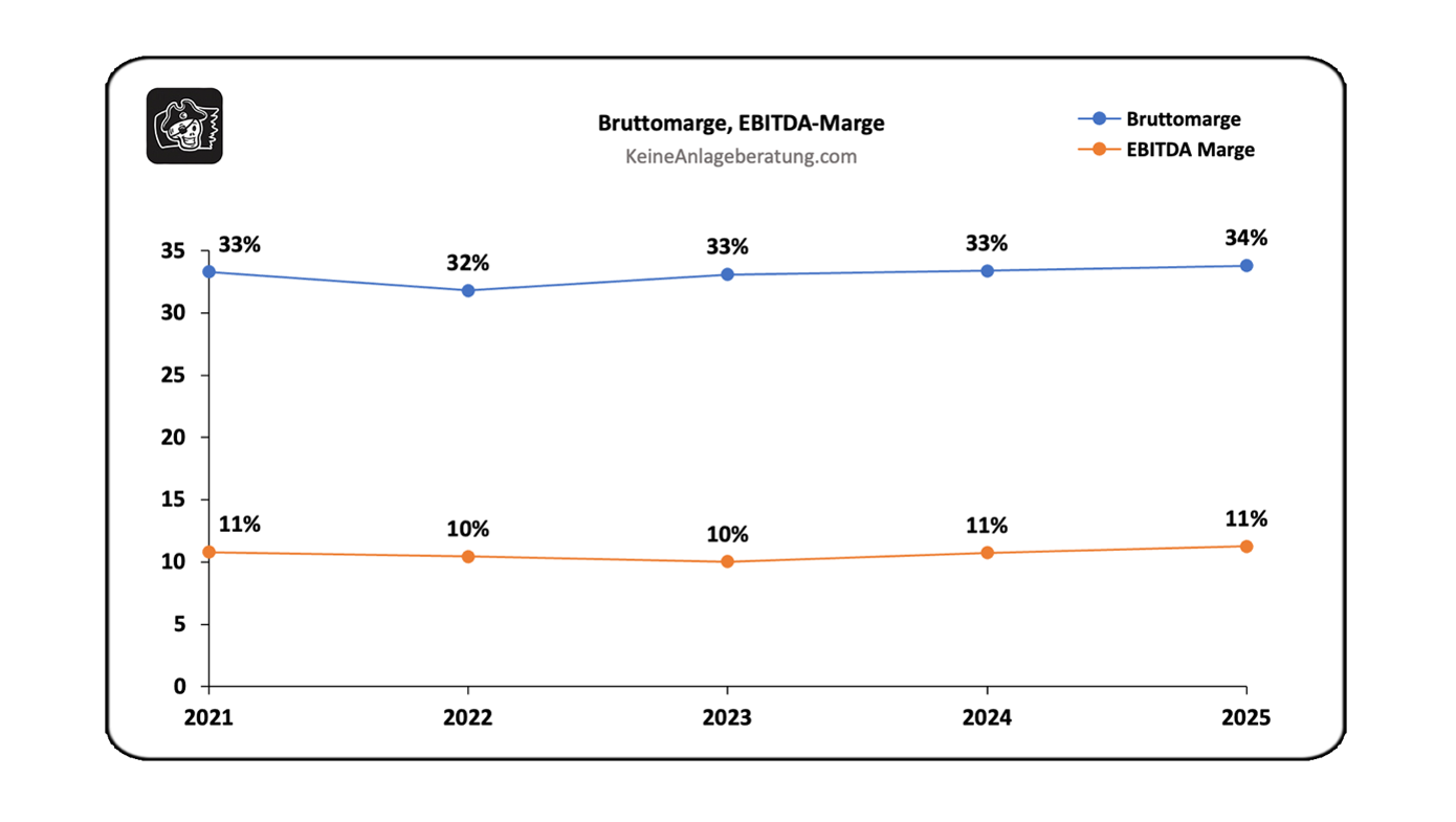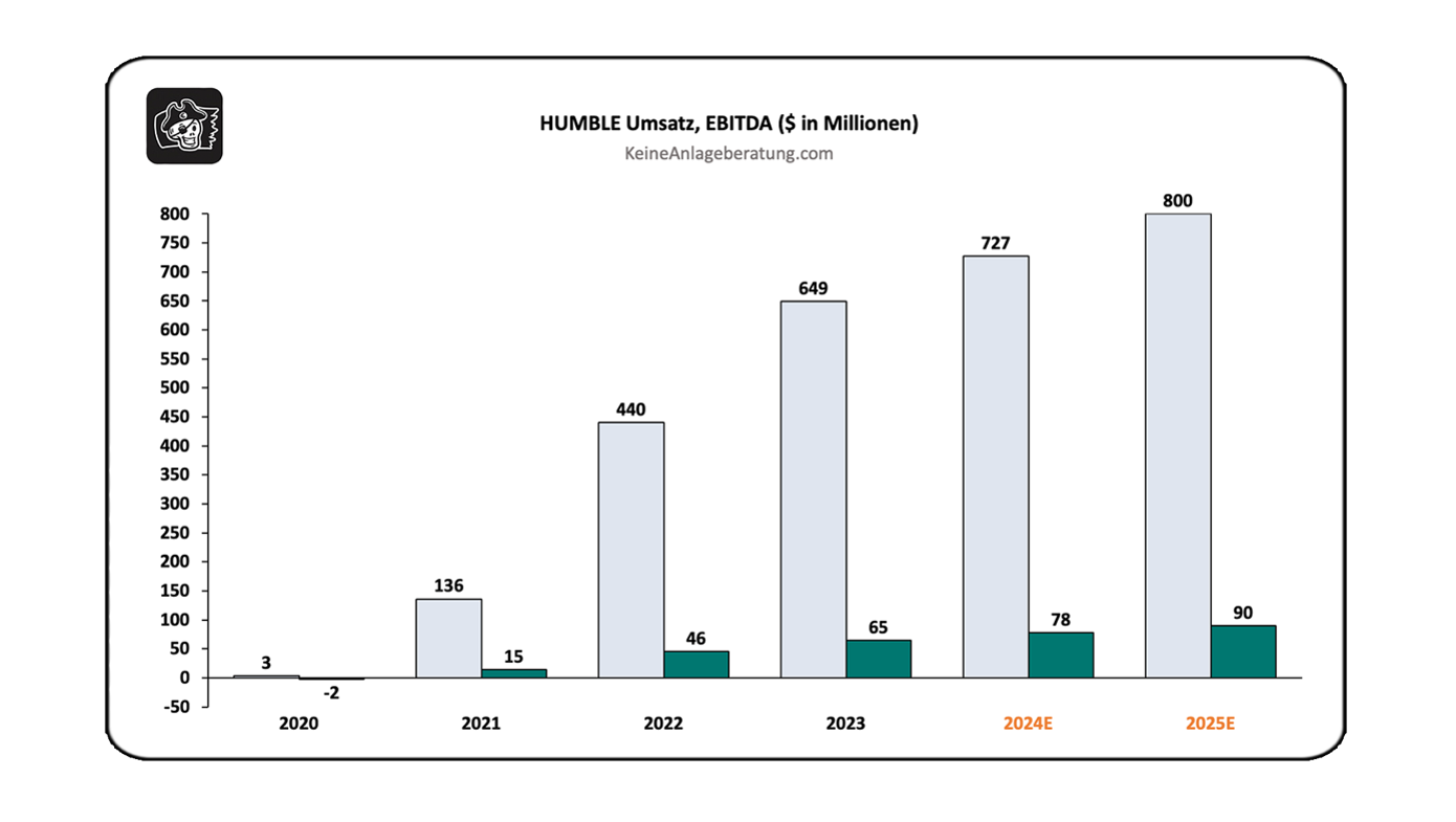 Die Margen in dieser Industrie sind für alle Unternehmen ähnlich. Die Brutto-Marge liegt meist zwischen 30-35% und die EBITDA-Marge bei 10-15%. Das ist ein Bereich, den auch die Humble Group mittelfristig erreichen möchte.