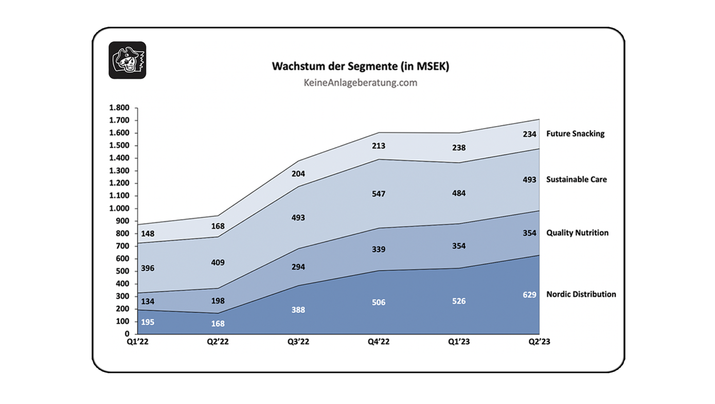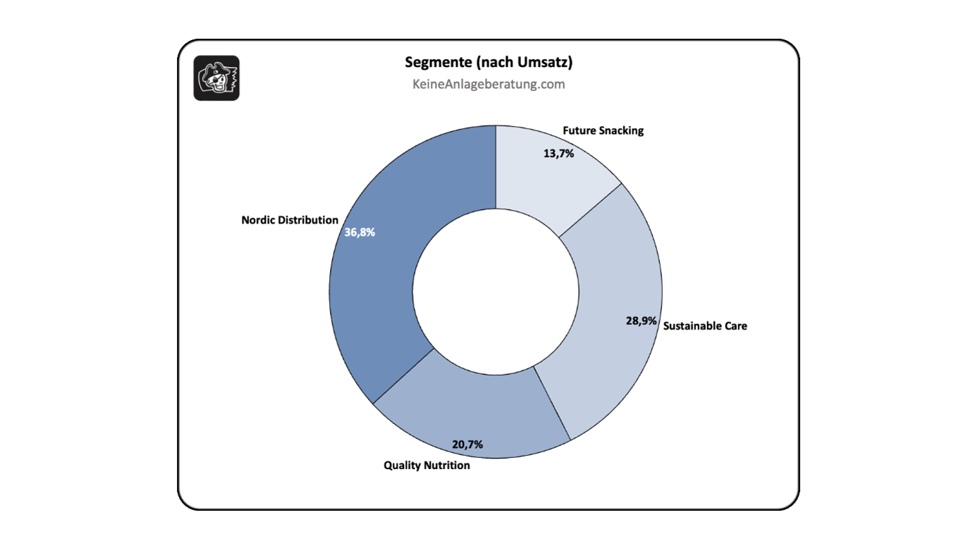 Nordic Distribution ist mit 36,8% Anteilen der scheinbar größte und wichtigste Teil des Unternehmens. Stimmen tut das allerdings nicht ganz. Wie bereits erwähnt, fällt in diesen Geschäftsbereich ihr Logistik und Supply-Chain-Management-Geschäft für die regionale Verbreitung ihrer Produkte. Mit dieser Sparte viel Umsatz zu generieren, verfolgen sie nicht als Ziel. Es geht eher darum, all ihren Portfoliounternehmen optimalen Service zur Verfügung zu stellen und in den anderen Geschäftsbereichen profitabler zu werden. Ihre EBITDA-Marge in diesem Segment lag im letzten Quartal bei gerade einmal 5% und trägt deswegen, obwohl es nach Umsatz das größte Segment ist, nur ähnlich stark den reinen Gewinnen bei, wie die zuvor genannten Segmente.