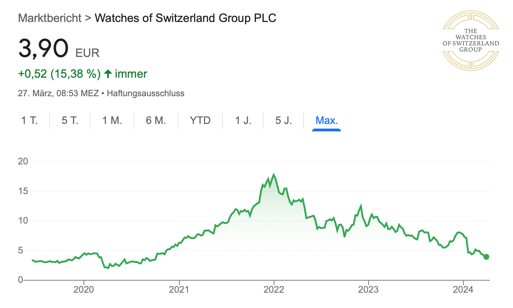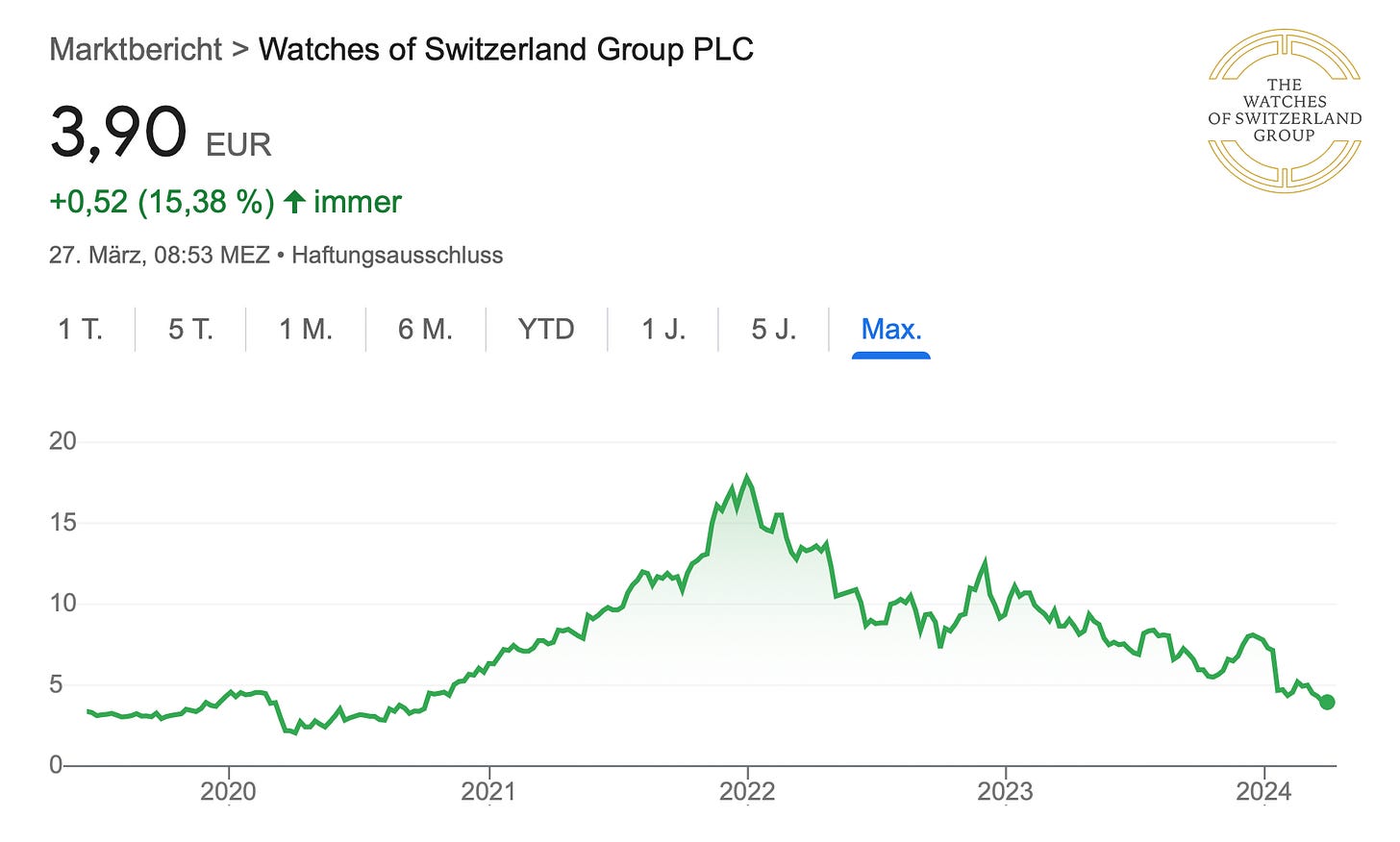 Watches of Switzerland ist ein Unternehmen aus England, das aktuell für £800 Mio. britische Pfund an der Börse zu haben ist.
