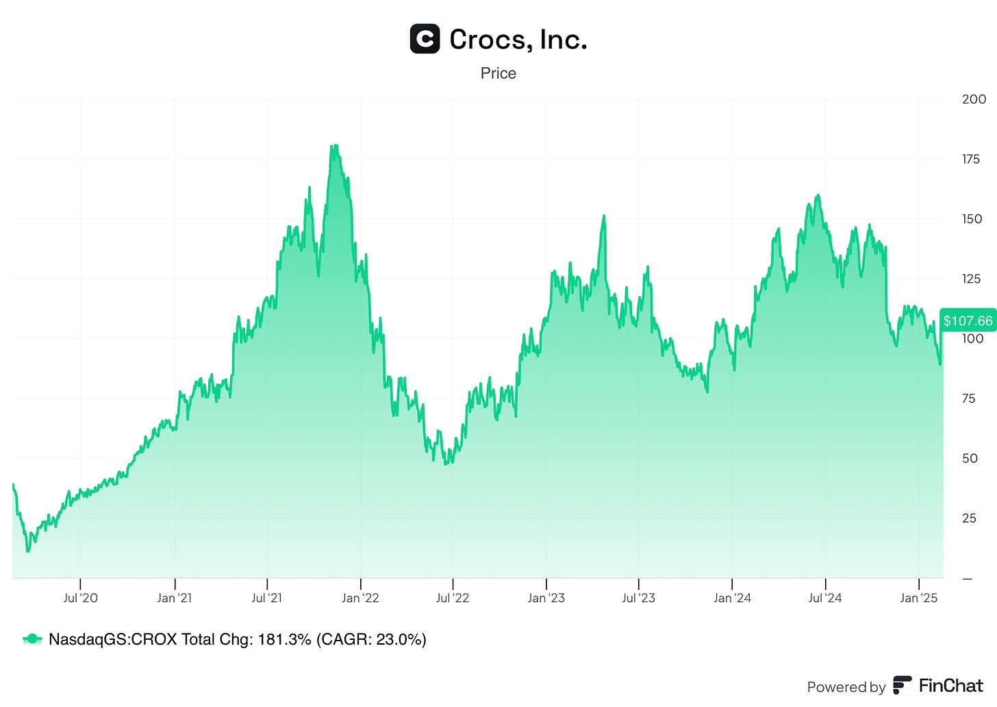 Crocs verkauft die berühmten Crocs-Schuhe, die für ihren einzigartigen Look und Komfort bekannt sind, sowie seit der Übernahme von HeyDude auch eine zweite erfolgreiche Schuhmarke.