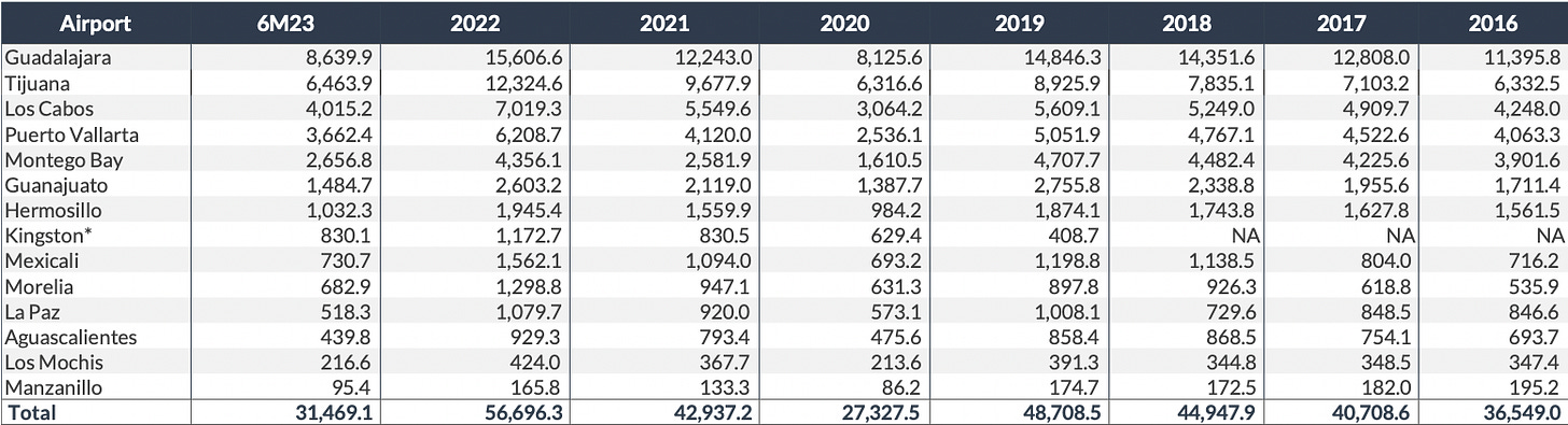 Insgesamt operiert PAC 14 verschiedene Flughäfen in Mexiko. Hierbei müssen wir zwischen Flughäfen unterscheiden, die entweder von Geschäfts- oder Urlaubsreisenden profitieren. Bei PAC ist dies etwa 50/50 aufgeteilt.