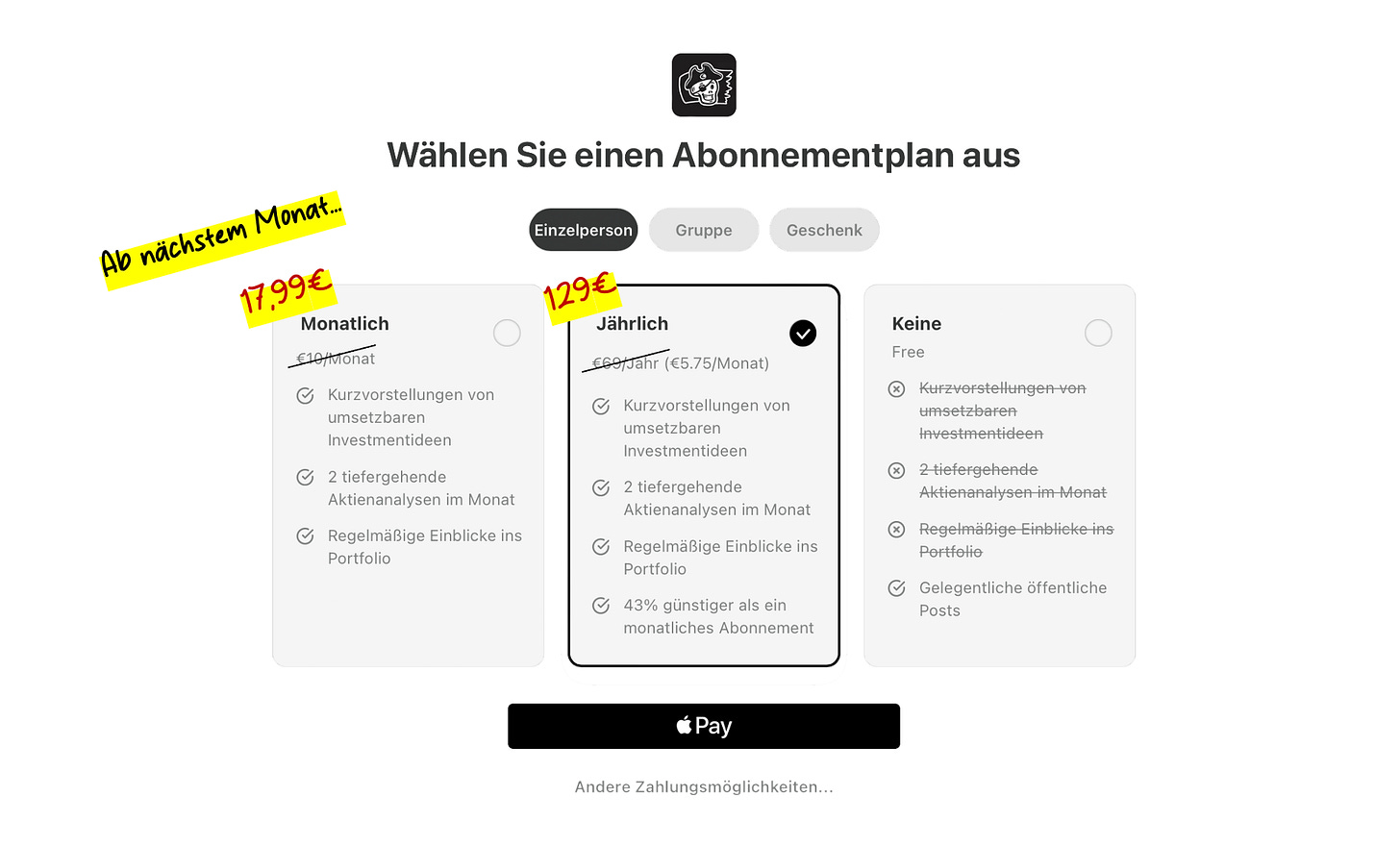 Die Preise für das Paid-Abonnement von KeineAnlageberatung steigen.